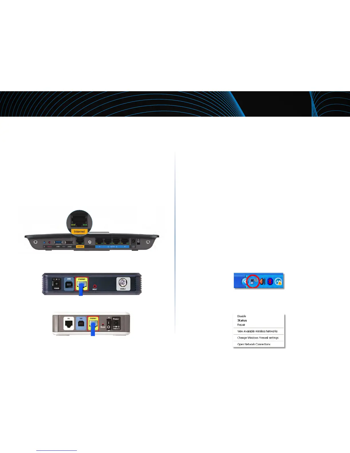 Om meddelandet “Your Internet cable is not plugged in” (Internetkabeln är inte