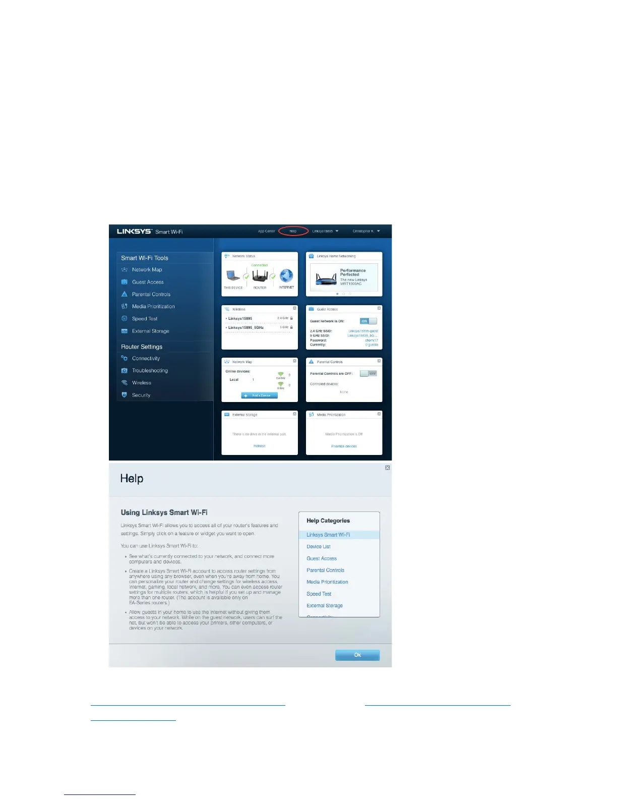 Linksys Smart Wi-Fi help (connect to Linksys Smart Wi-Fi, then click Help at the top of the