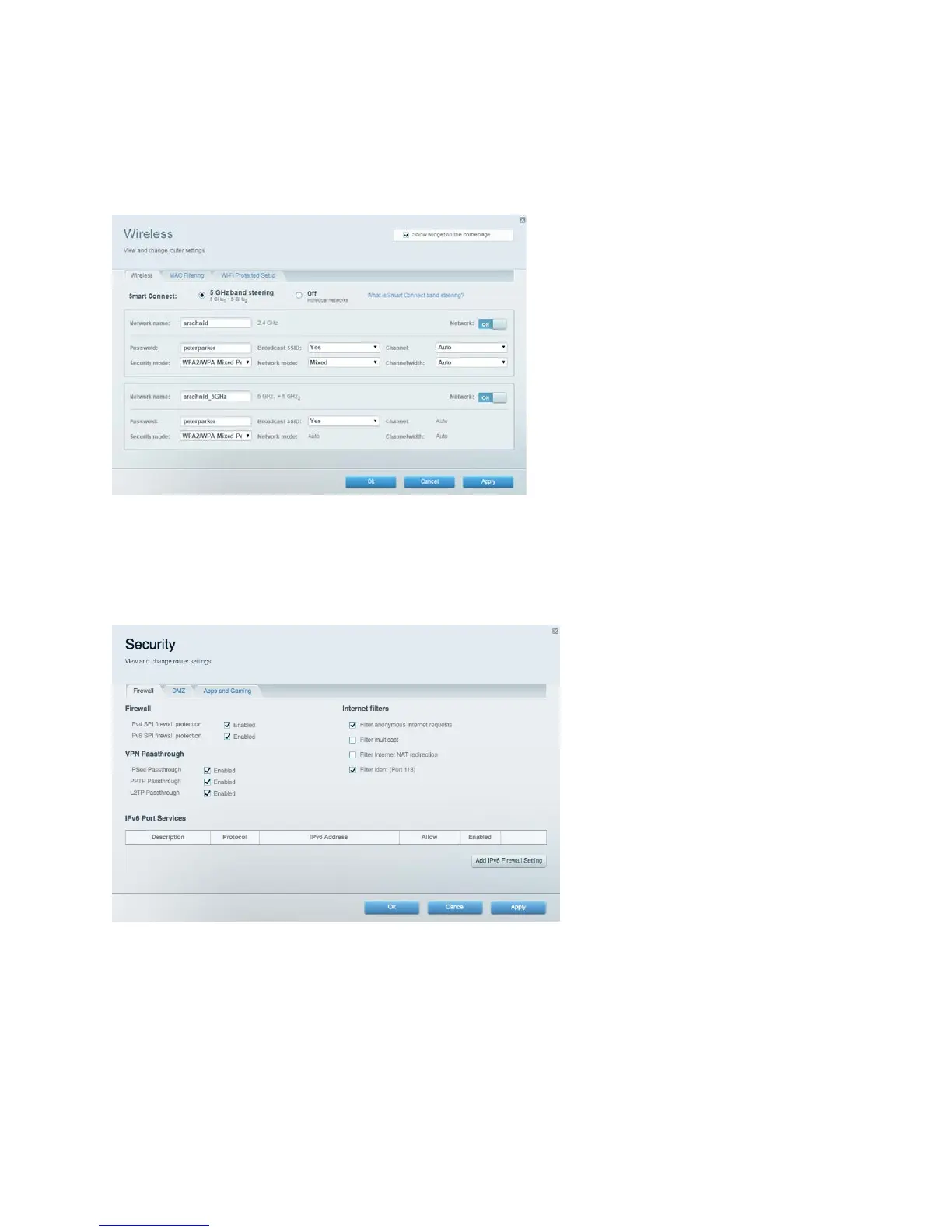Lets you view and change your router’s wireless security. You can set up the firewall, VPN settings,