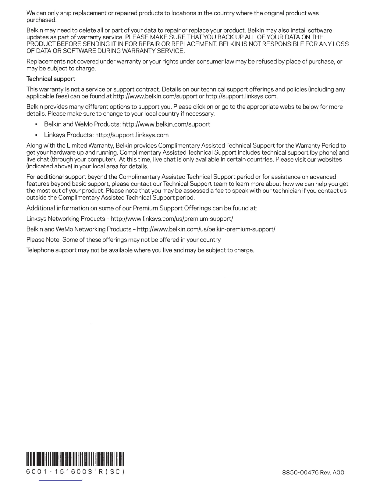 the Limited Warranty, Belkin provides Complimentary Assisted Technical Support