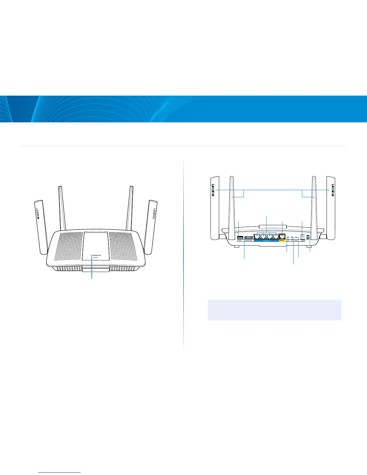 • Indicador de corriente: el logotipo de Linksys permanece encendido
