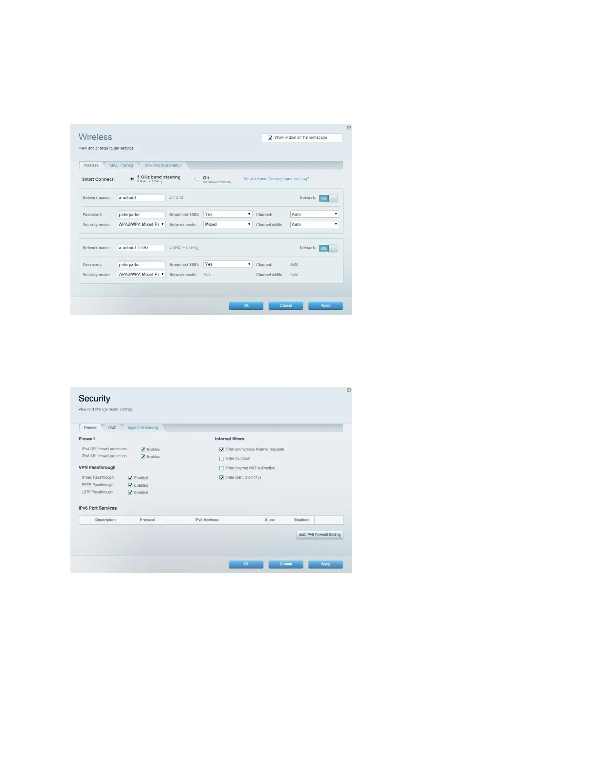 วยให ้คุณสามารถดูและเปลี่ยนแปลงการรักษาความปลอดภัยแบบไร้สายของเราเตอร์ของคุณได ้ คุณสามารถตั้งค่าไฟร์
