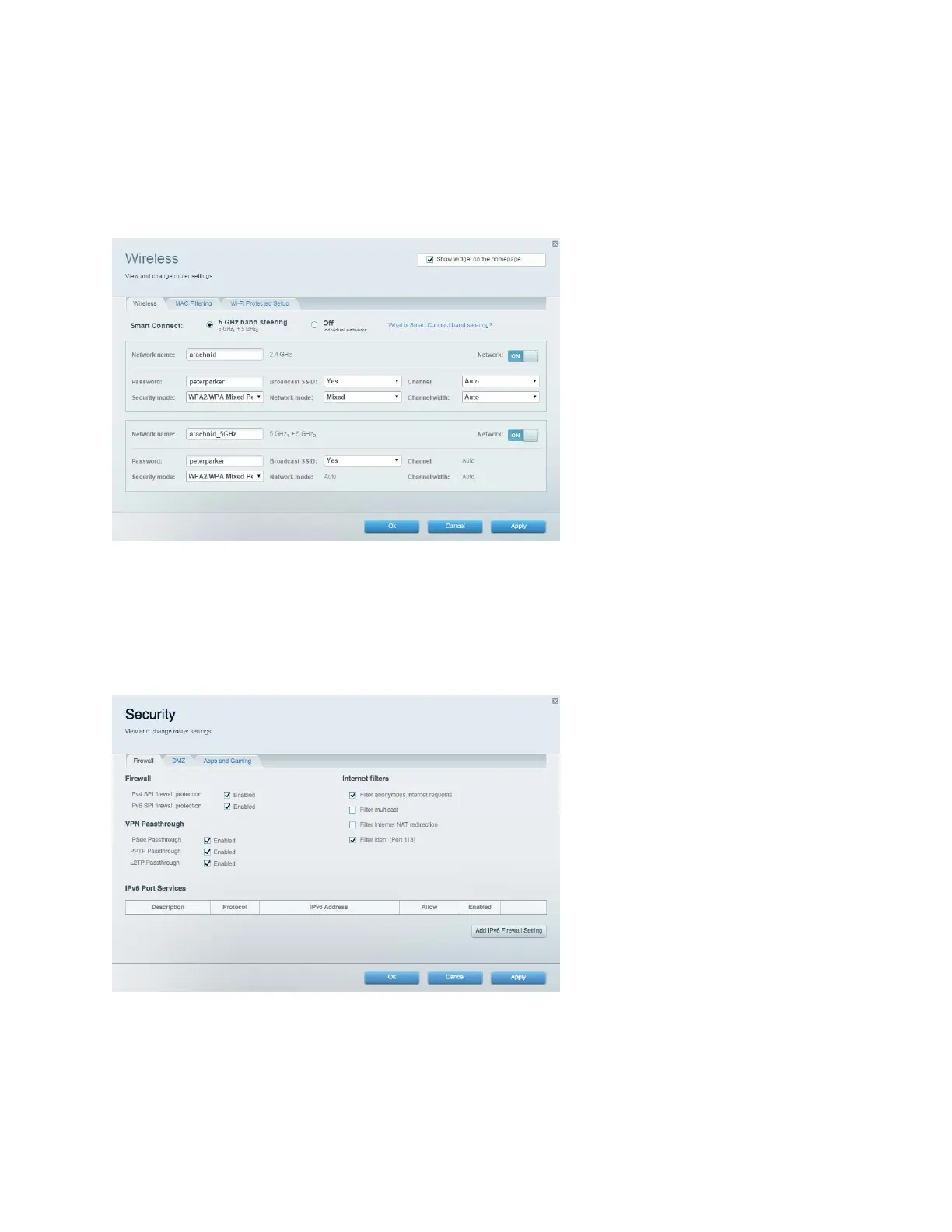 Yönlendiricinizin kablosuz güvenliğini görüntülemenize ve değiştirmenize olanak tanır. Güvenlik