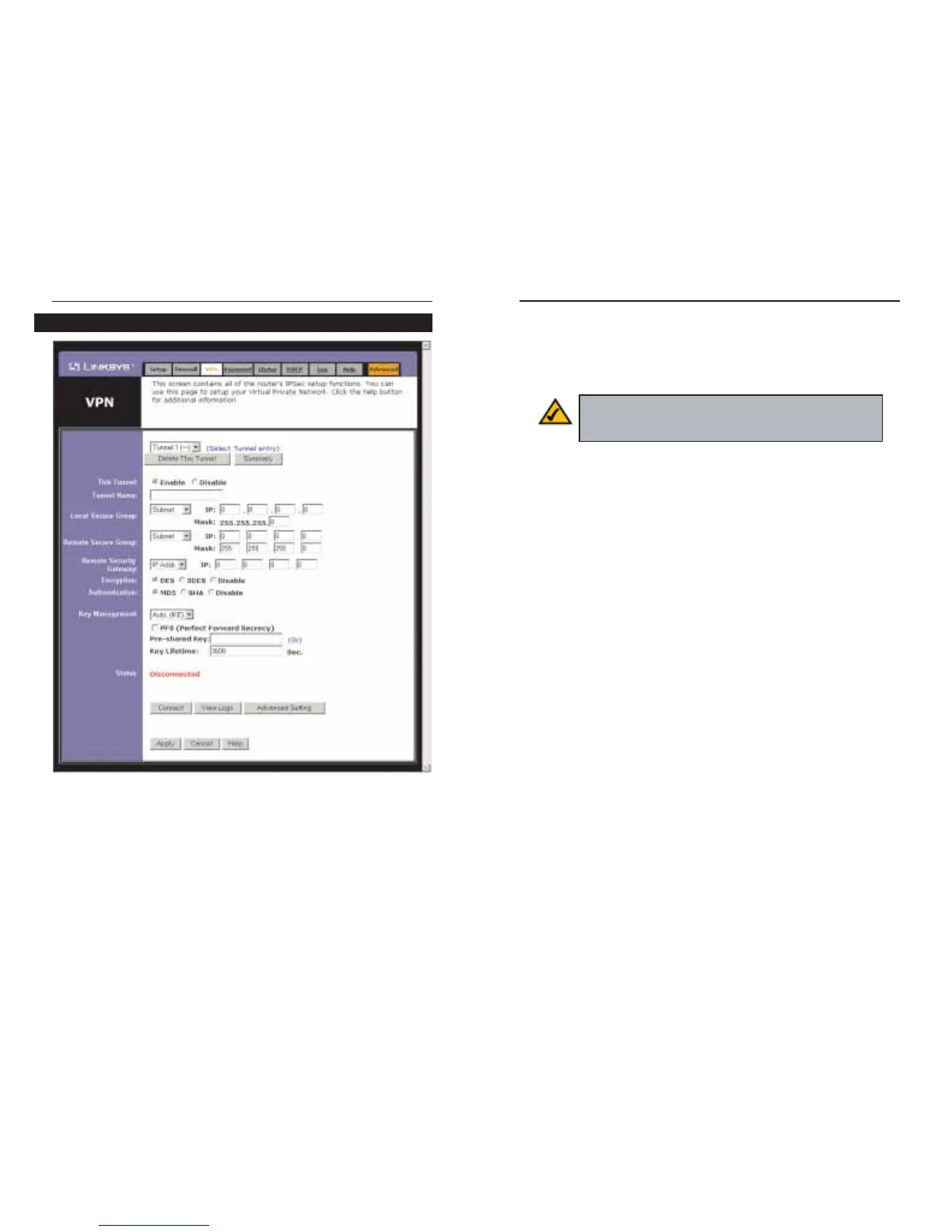 The VPN screen, shown in Figure 7-11, allows you to configure your VPN set-