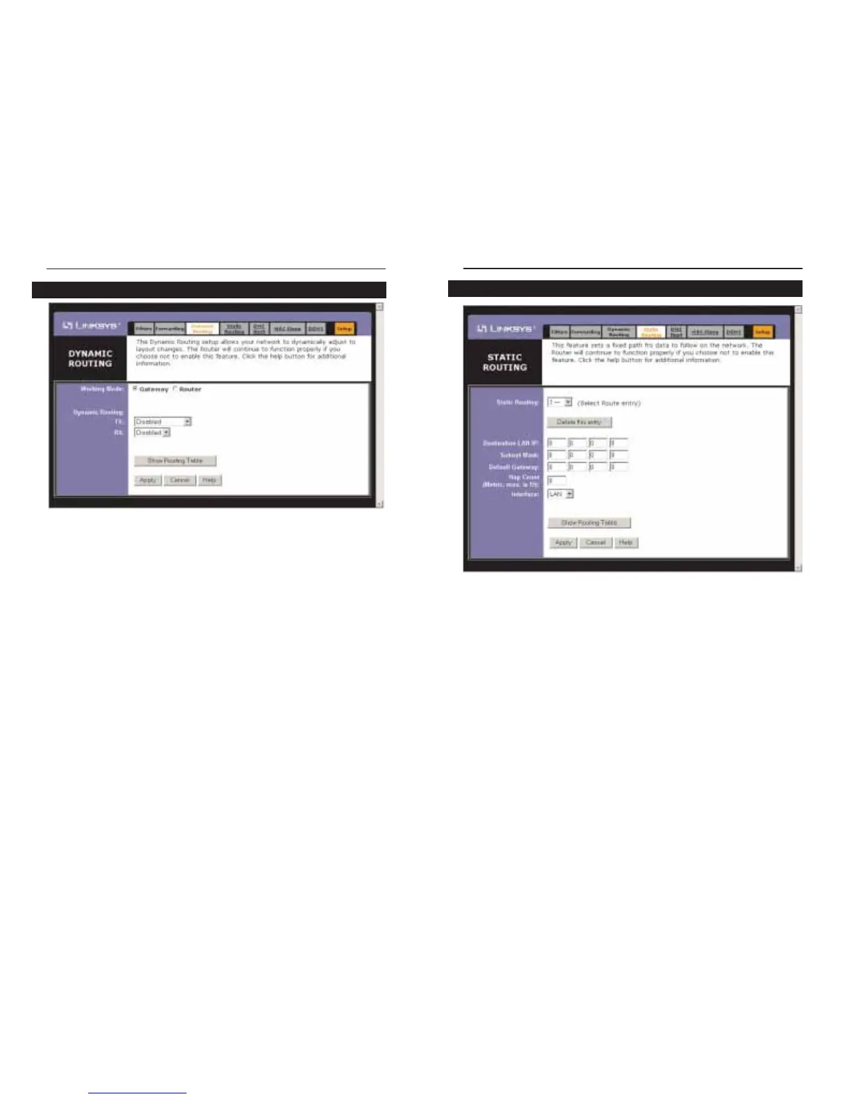 Static Routing tab, click the Show Routing Table button to view the current