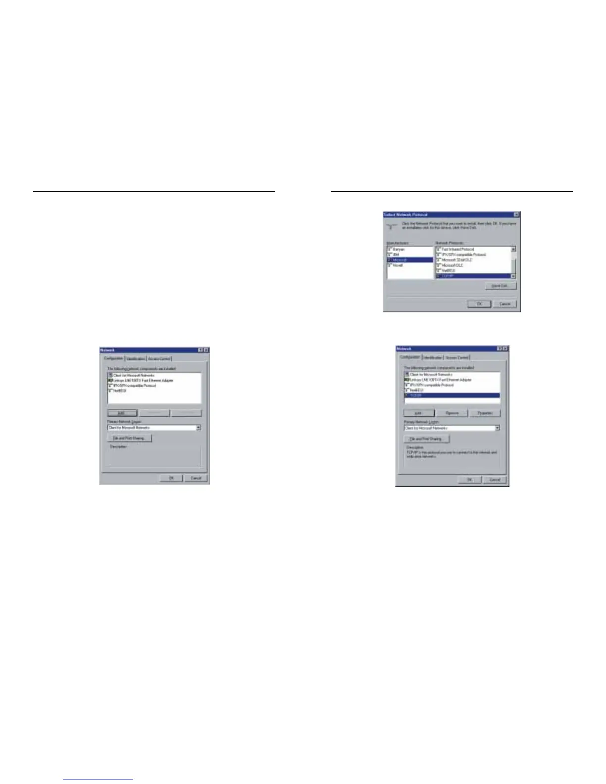 instructions are for Windows 95, Windows 98, and Windows Me. For TCP/IP