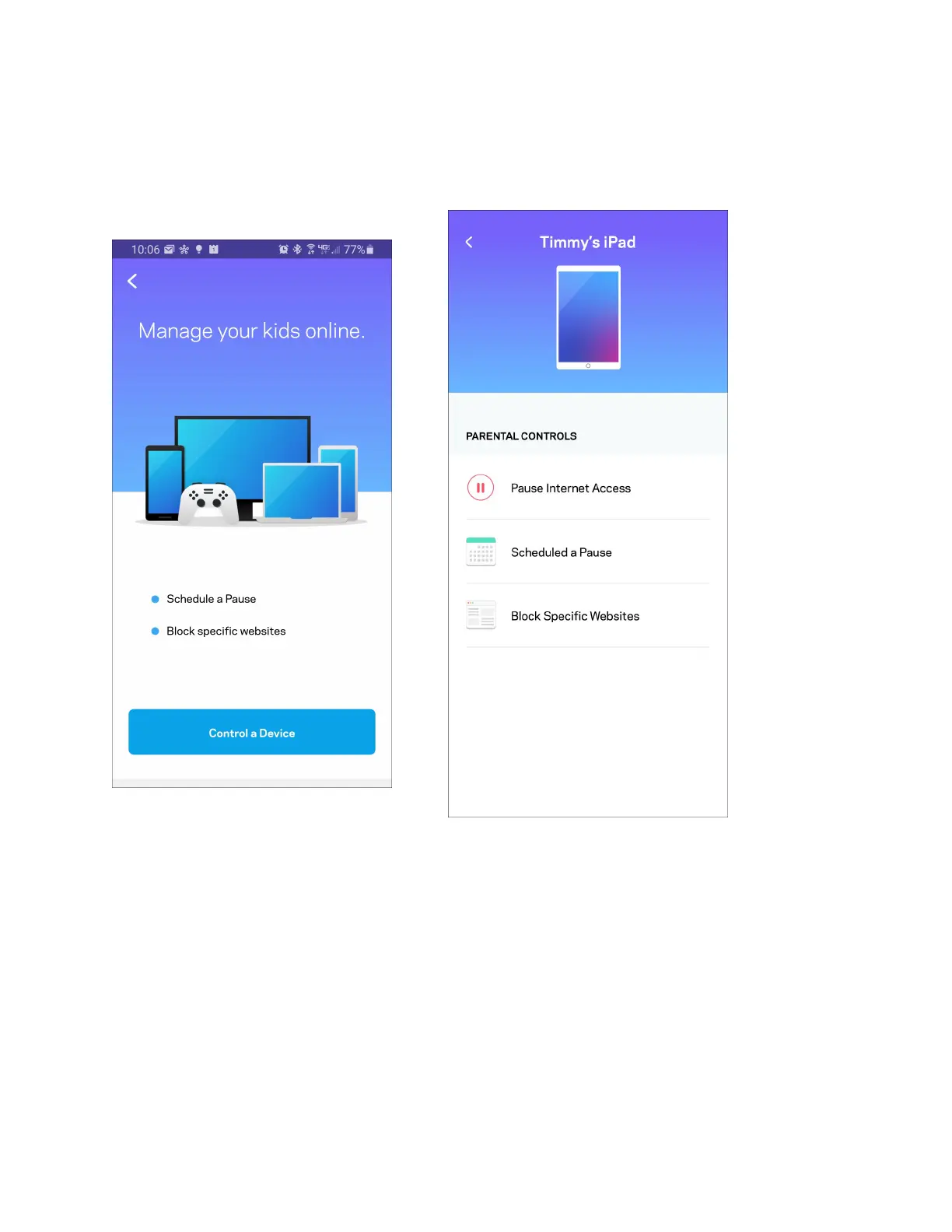 Bloqueie temporariamente o acesso de determinados dispositivos à internet ou a determinados websites.