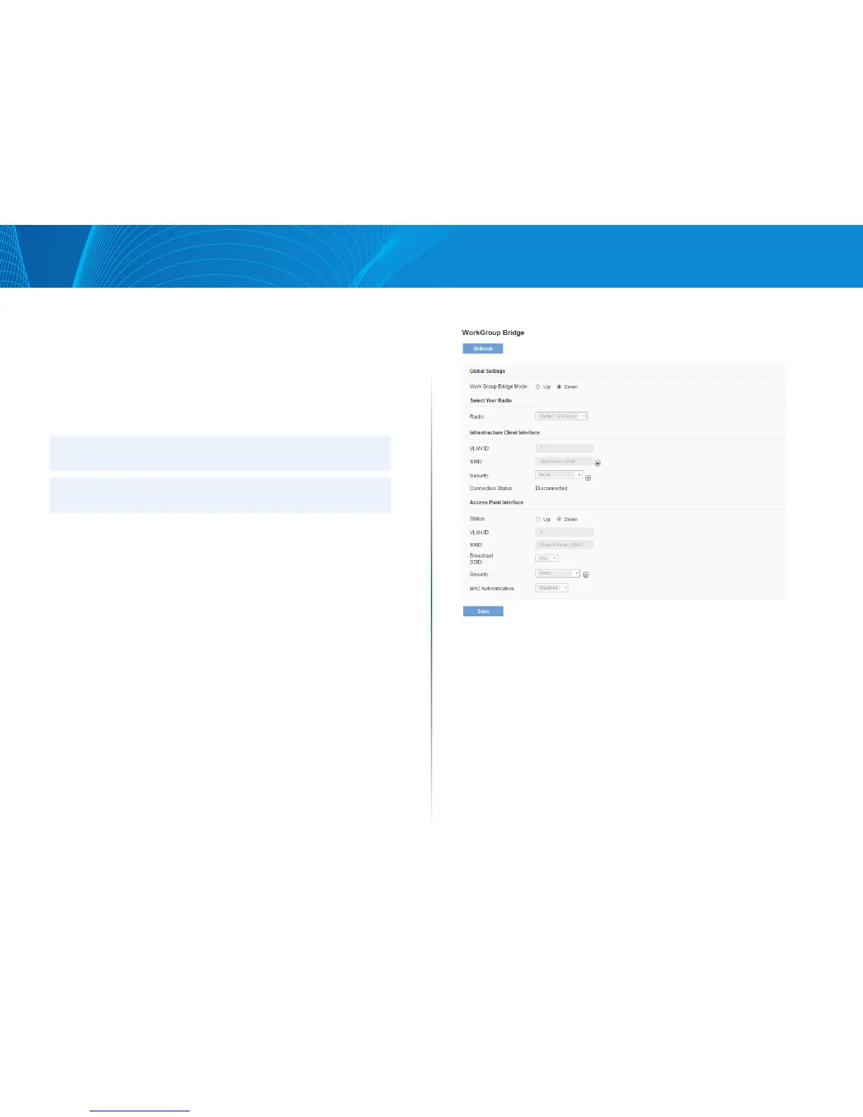 To configure the Workgroup Bridge settings, click the Configuration > Wireless