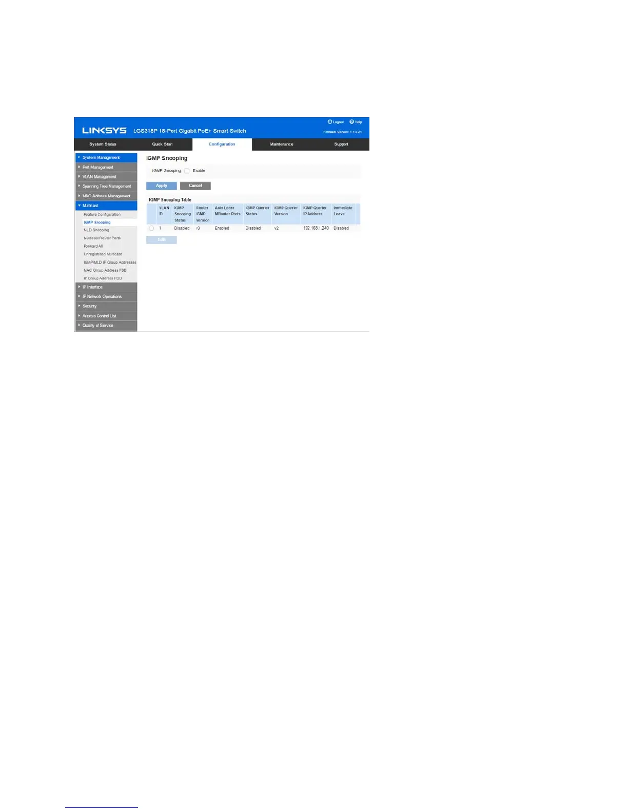 IGMP Snooping Status-Enable or disable the monitoring of network traffic for the