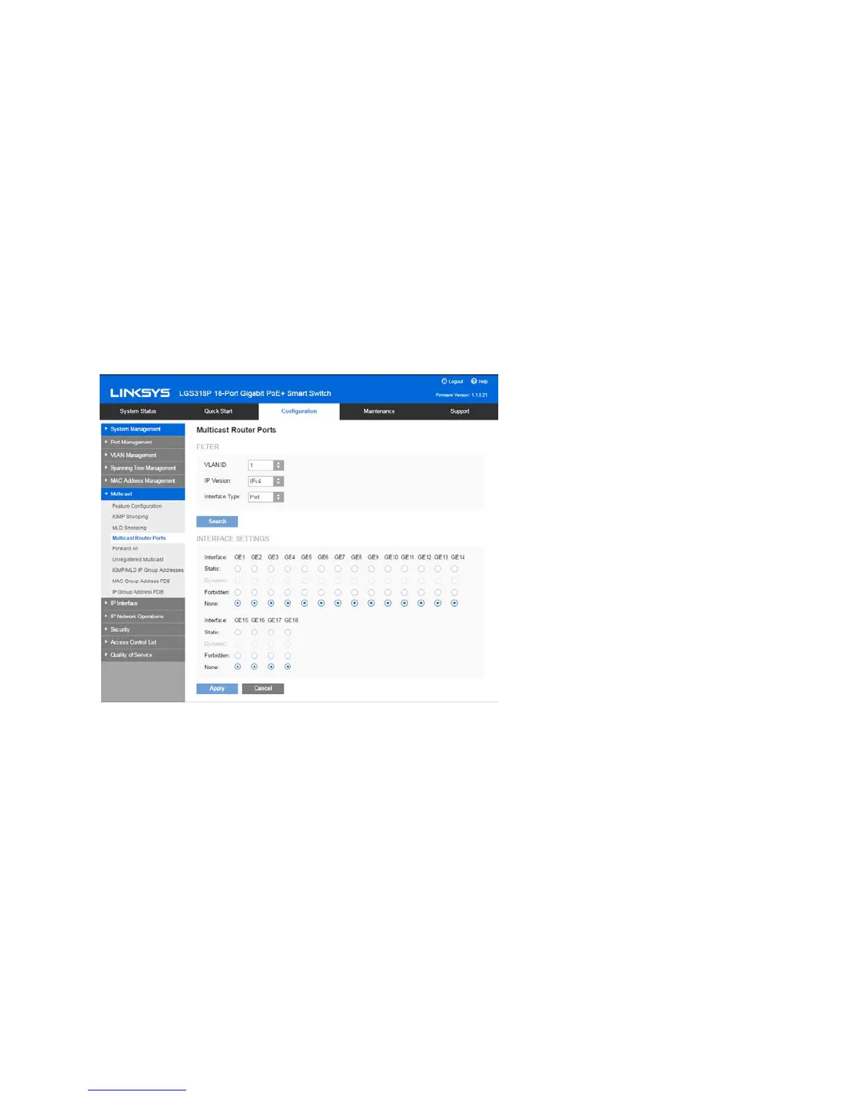 Click Configuration > Multicast > Multicast Router Ports.