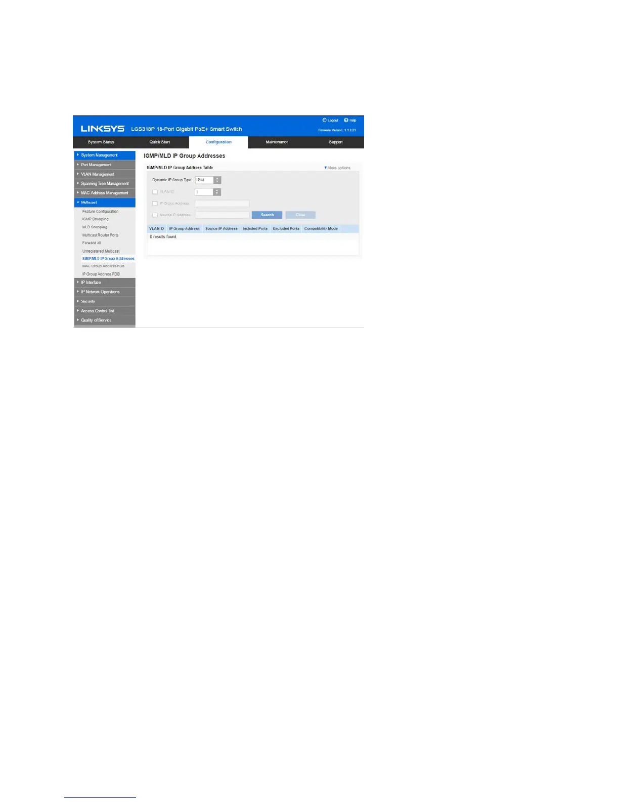 Click Configuration > Multicast > IGMP IP Group Addresses.