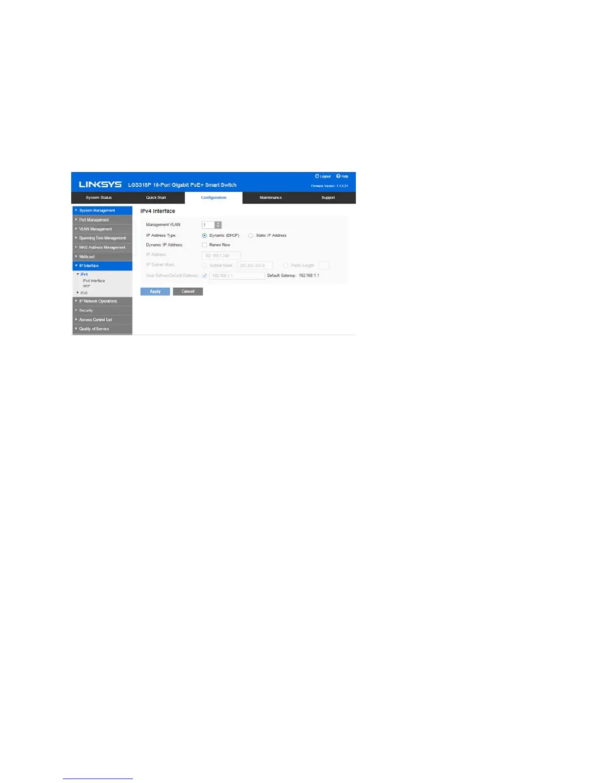 Click Configuration > IP Interface > IPv4 > IPv4 Interface.