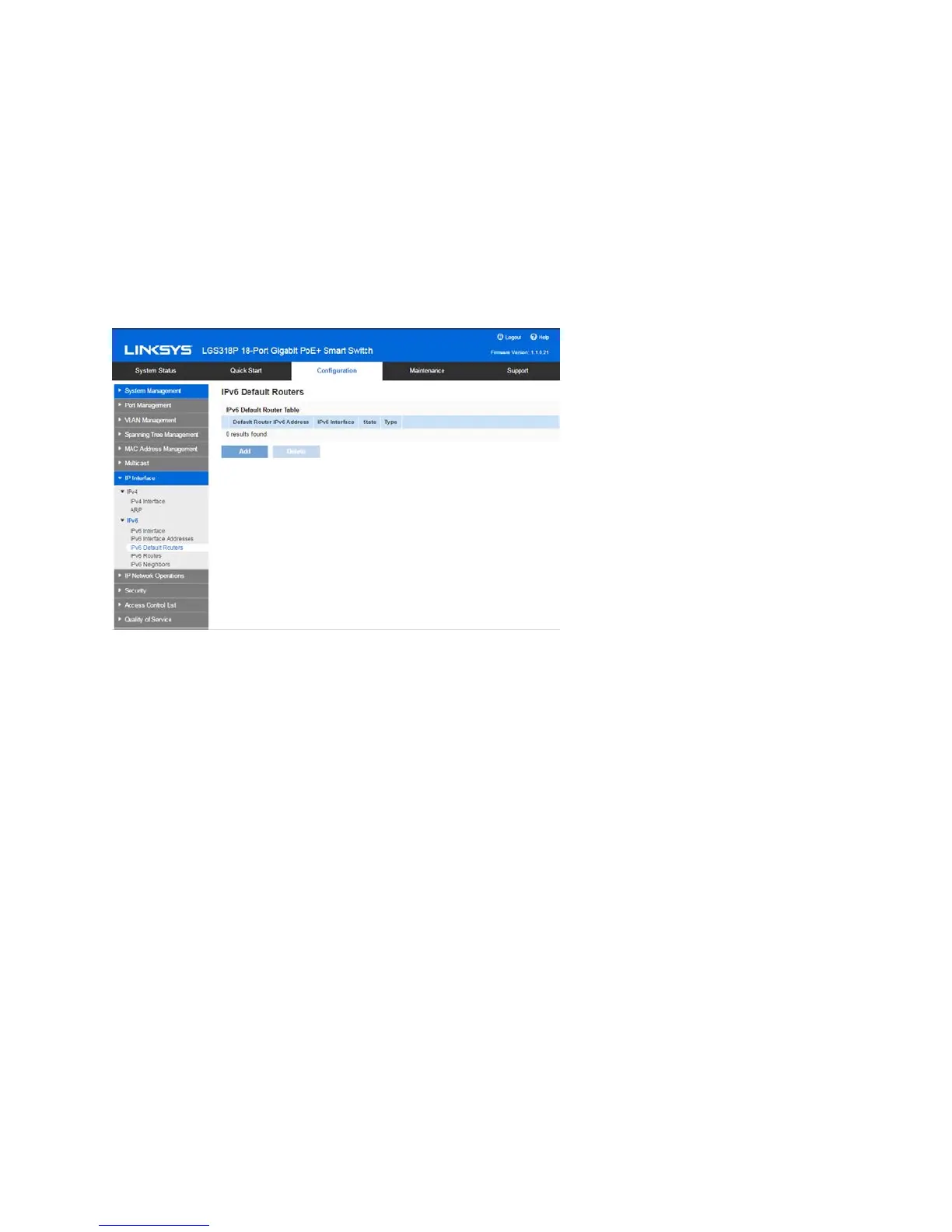 Click Configuration > IP Interface > IPv6 > Default Routers.