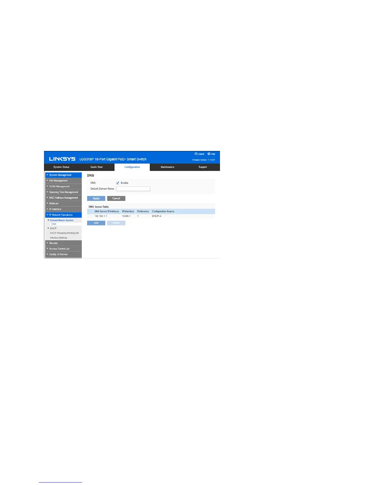 Click Configuration > IP Network Operations > Domain Name System > DNS.