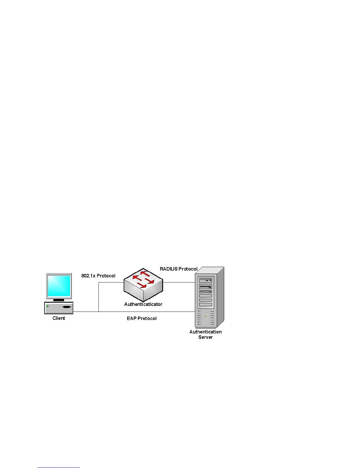 The device supports the 802.1x authentication mechanism, as described in the standard, to