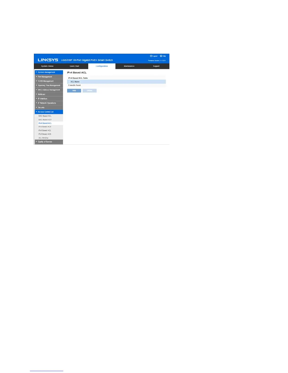 1. Click Configuration > Access Control List > IPv4 Based ACL