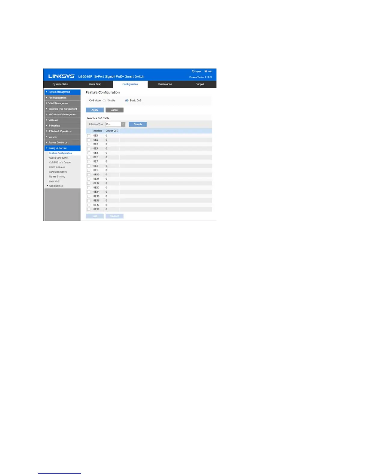 1. Click Configuration > Quality of Service > Feature Configuration.