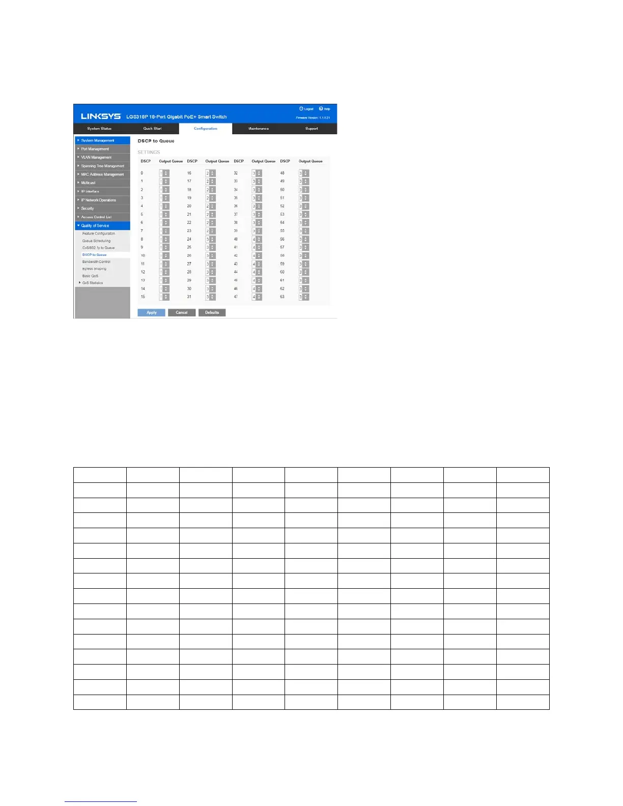 queues. The DSCP to Queue Table determines the egress queues of the incoming IP packets