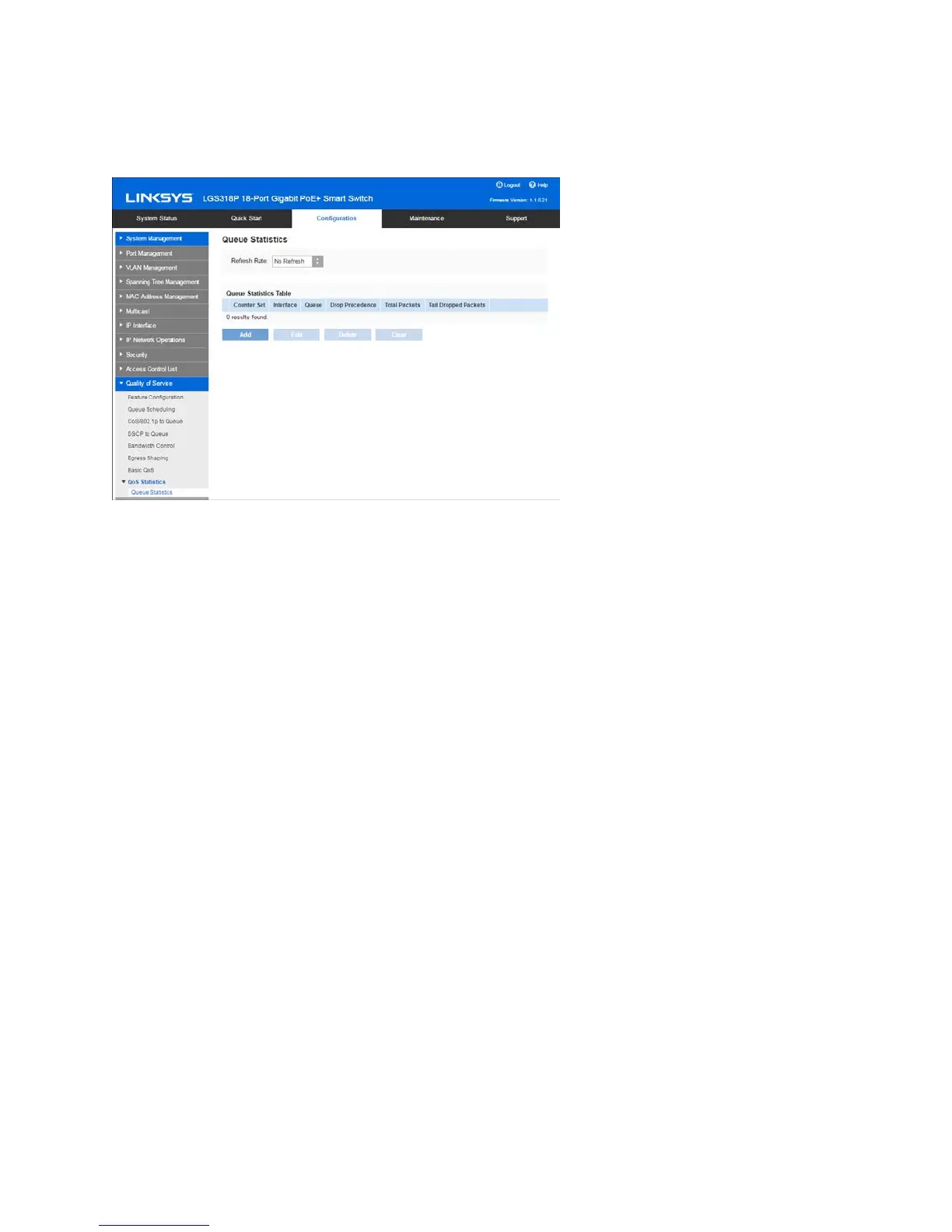 1. Click Configuration > Quality of Service > QoS Statistics > Queues Statistics.