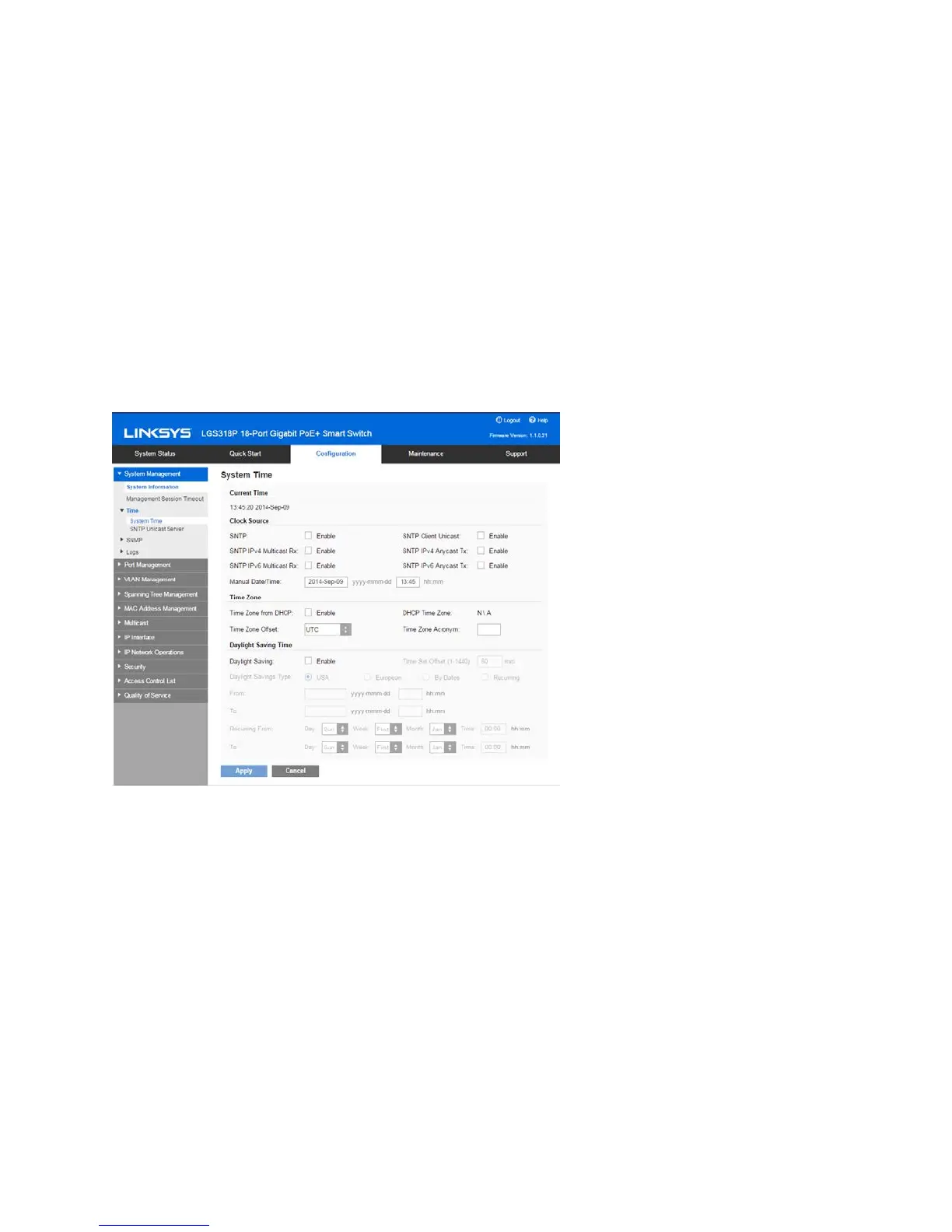The current time is displayed. This shows the DHCP time zone or the acronym for the user-