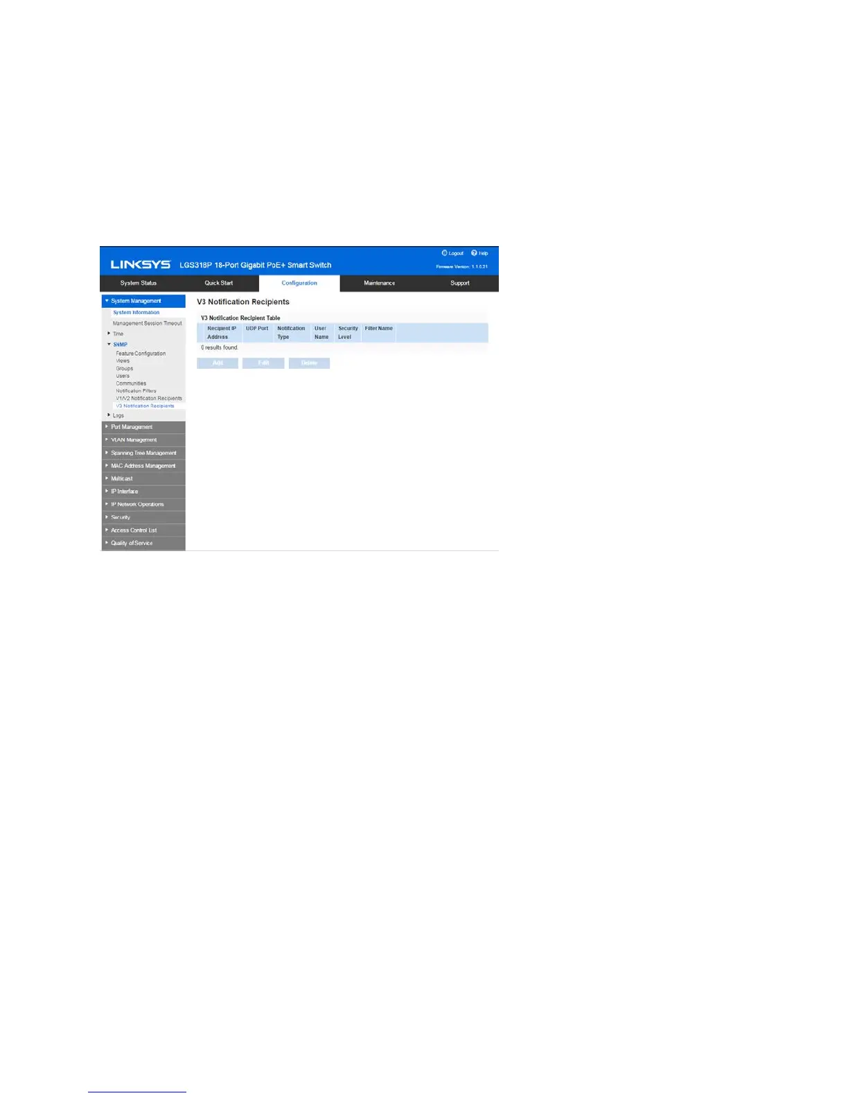 Click Apply. The SNMP Notification Recipient settings are written to the Running