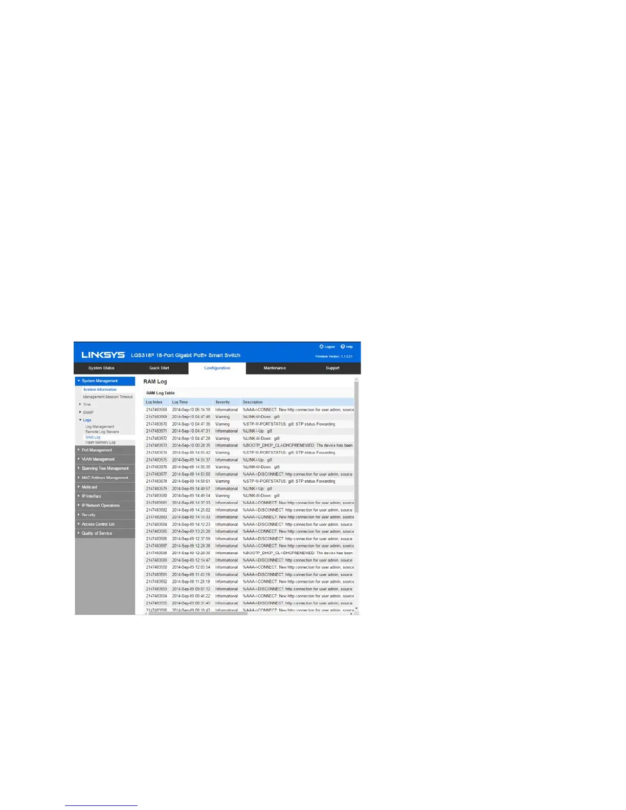 order. Entries are stored in the RAM log according to the configuration in the Log Management