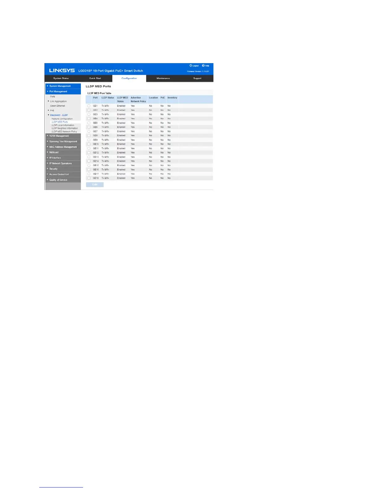 Click Configuration > Port Management > Discovery LLDP > LLDP MED Ports.