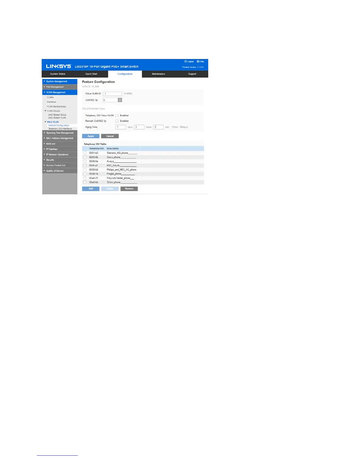 Click Configuration > VLAN Management > Voice VLAN > Feature Configuration.