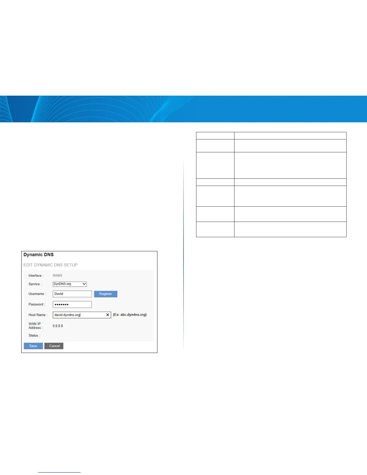 > Setup > Dynamic DNS page to configure the WAN interfaces with your