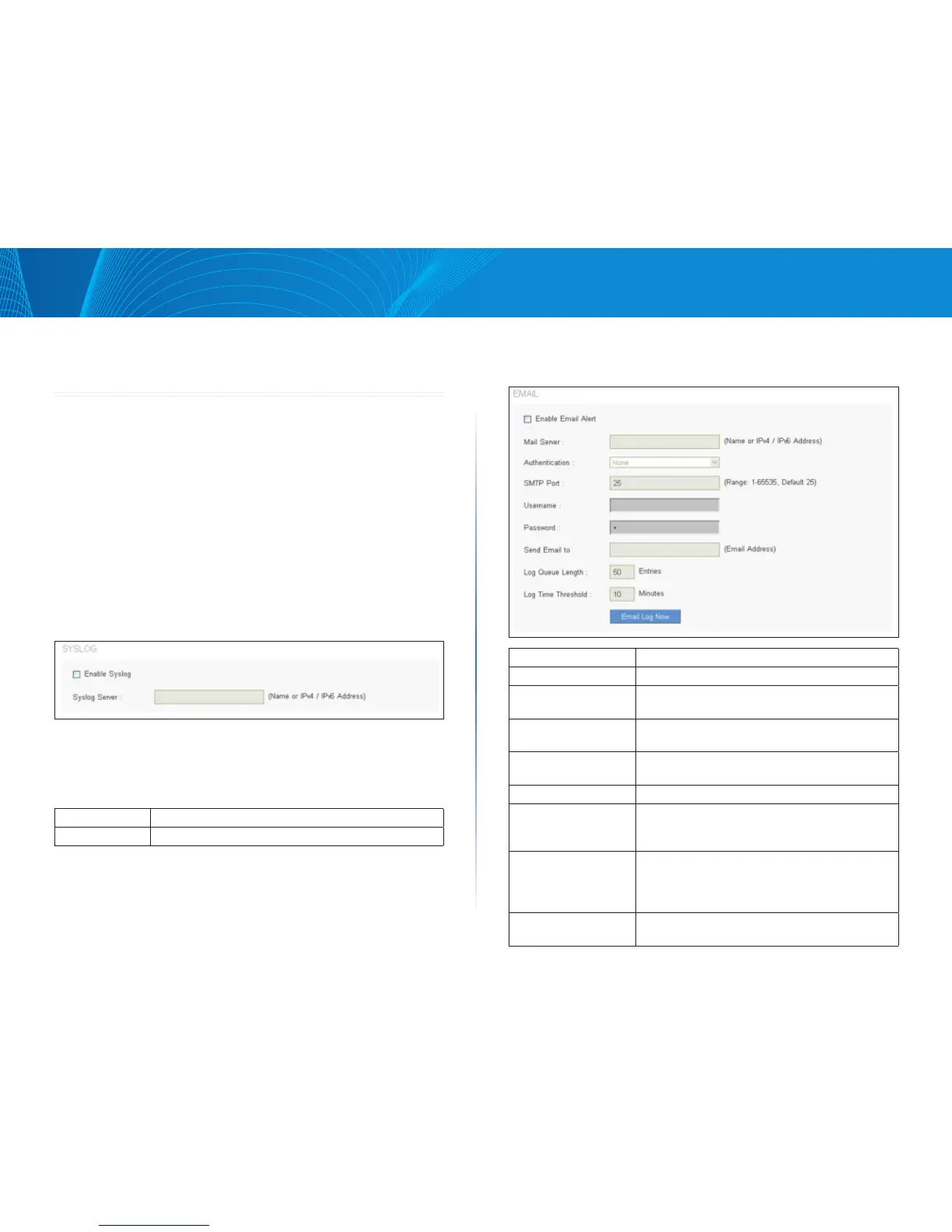 Go to Device Configuration > Log > System Log page to configure syslog and