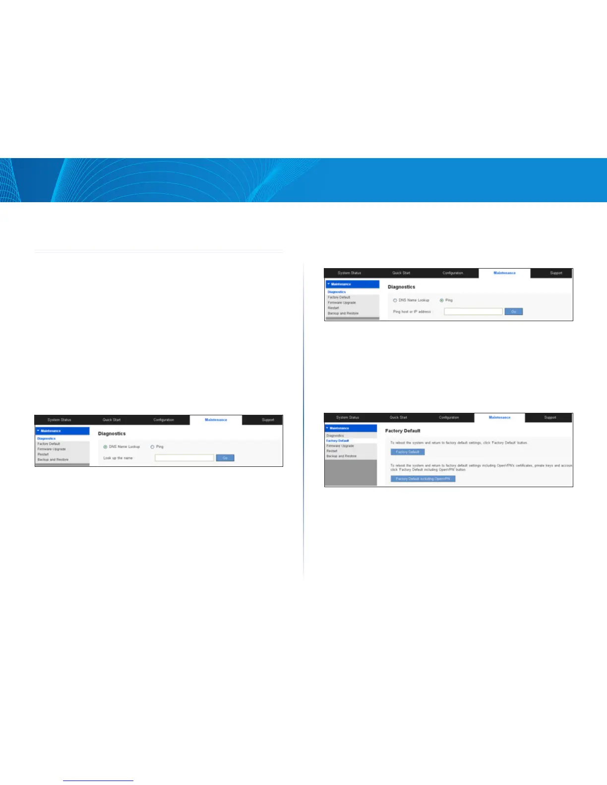 troubleshoot network-related problems. Go to Maintenance > Diagnostic.