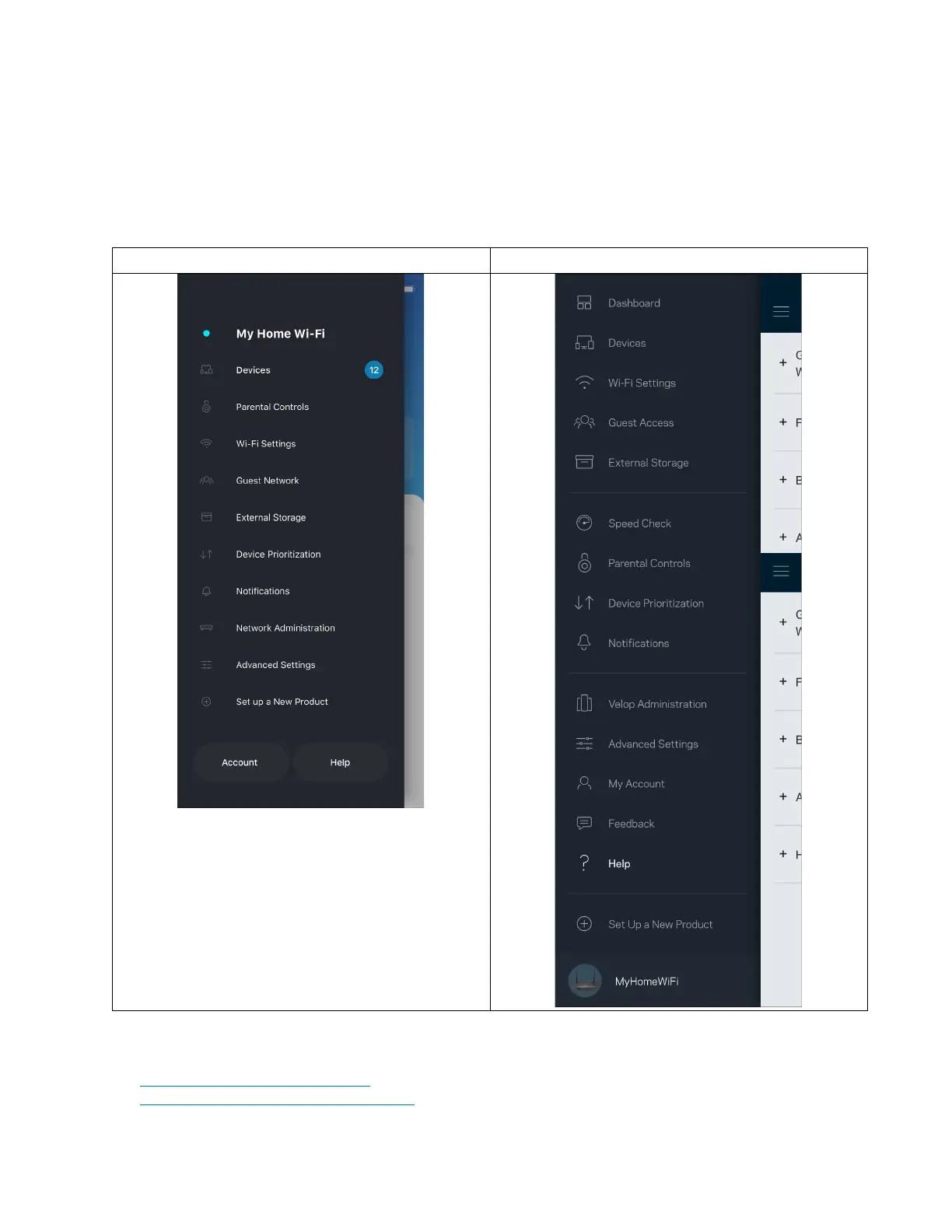 Linksys App Hilfe (rufen Sie die App auf und klicken Sie im Hauptnavigationsmenü auf Help (Hilfe)