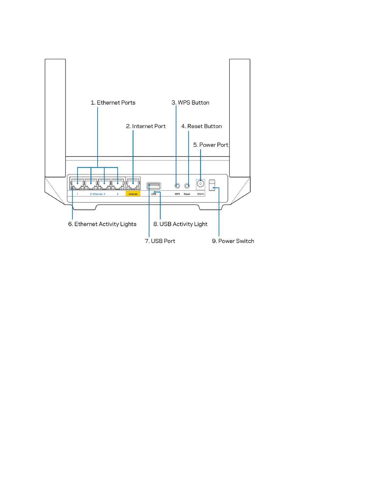 Port d'alimentation (5) : branchez sur ce port l'adaptateur secteur fourni avec le routeur.