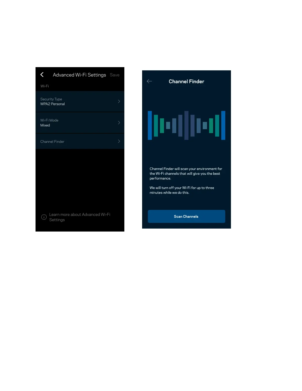 Channel Finder将搜索您所在区域最开放的Wi-Fi信道,以确保您可利用您系统的最佳性能。如果您的系统中有
