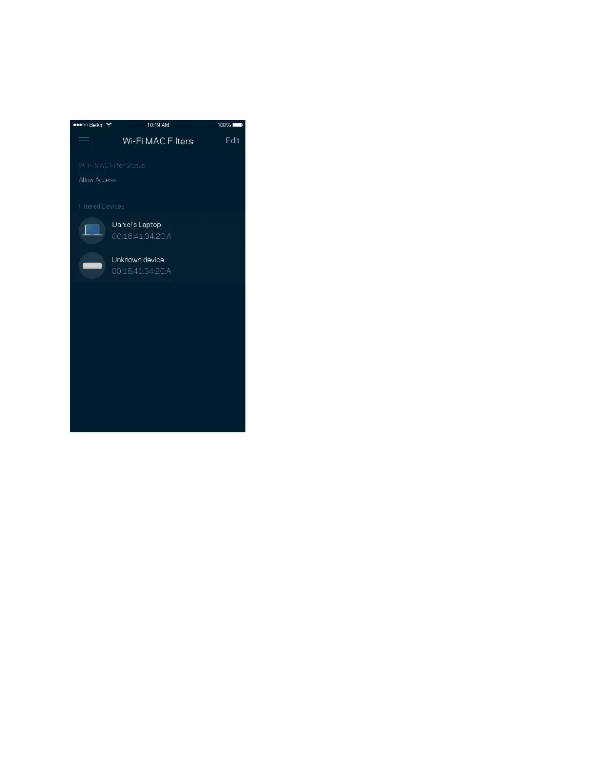 oprette en liste over MAC-adresser, og derefter tillade eller nægte adgang disse enheder til dit Wi-Fi.