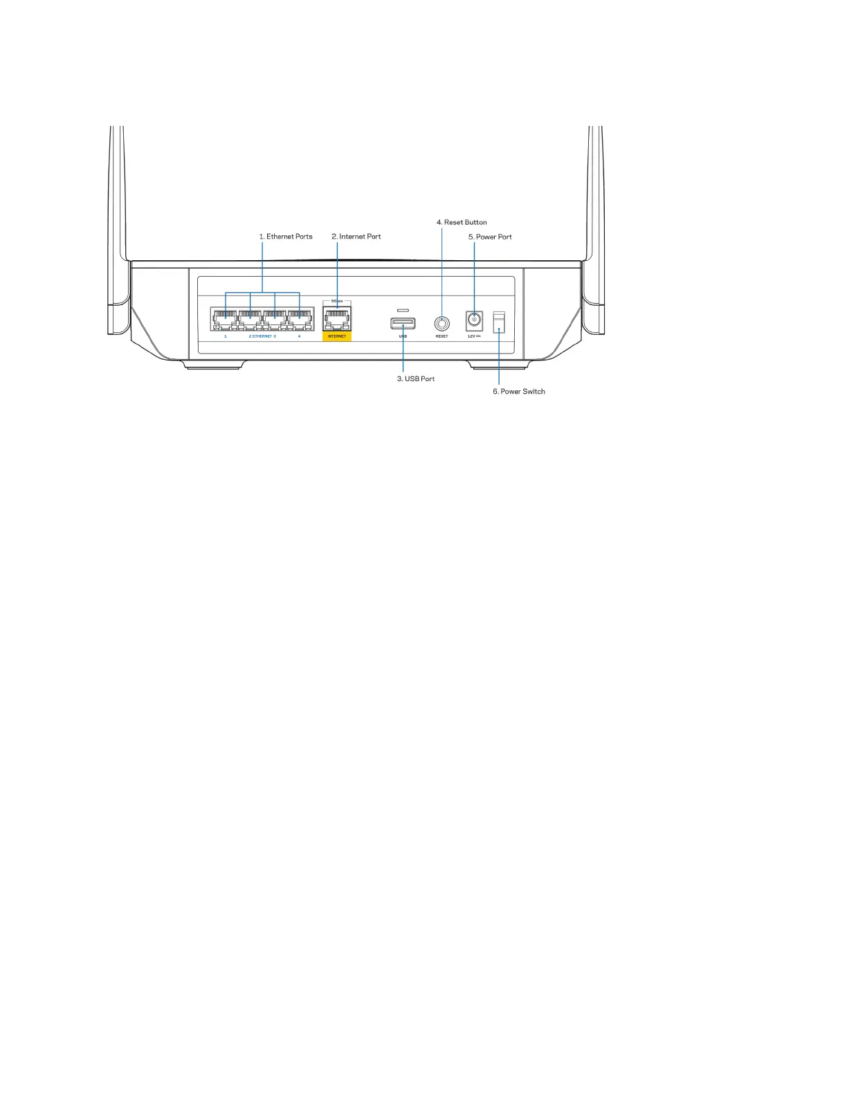 Botón de Reset (Reinicio) (4): para reiniciar a la configuración predeterminada de su router, presione y mantenga presionado