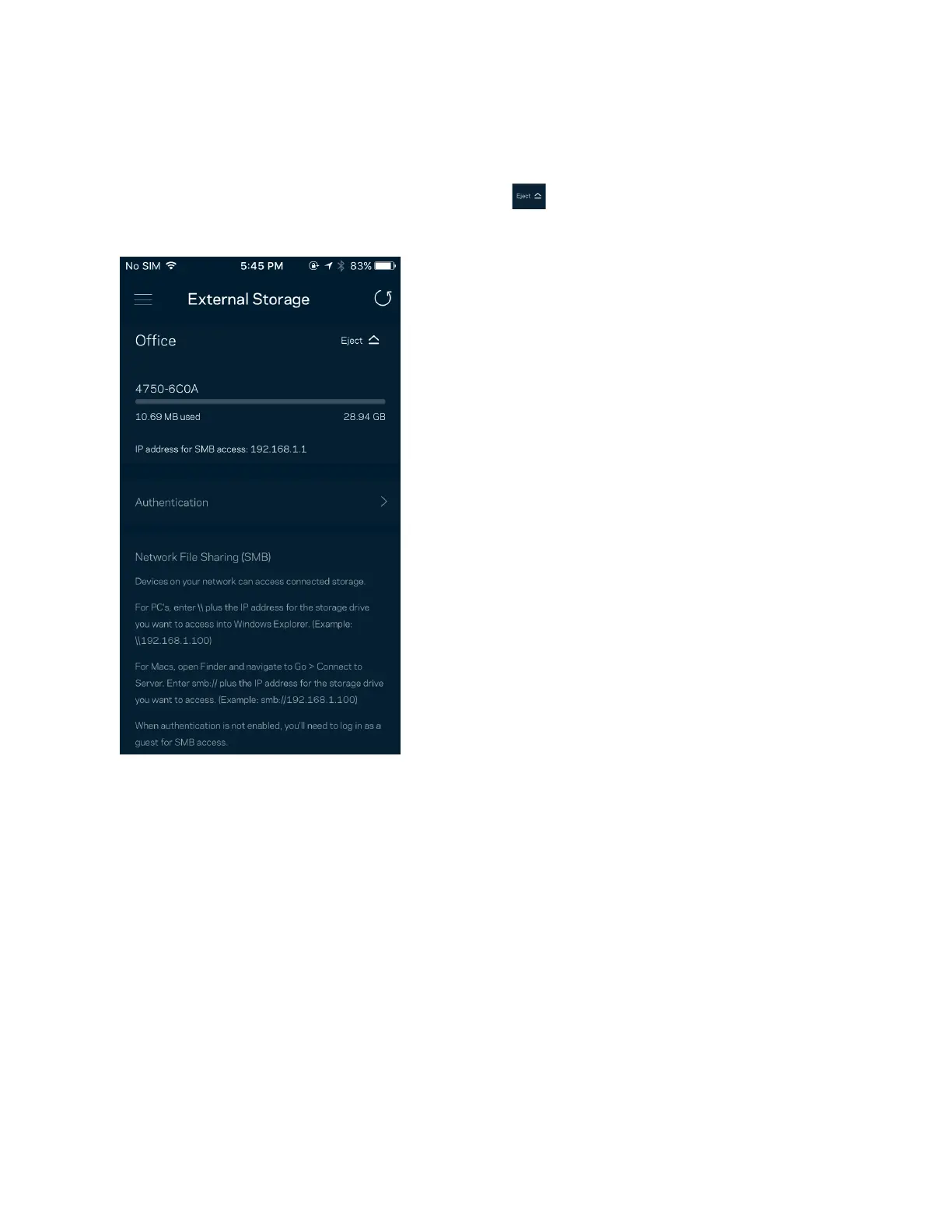 le port USB de votre routeur). Assurez-vous d’appuyer sur Éjecter avant de retirer un lecteur afin d’éviter une perte de