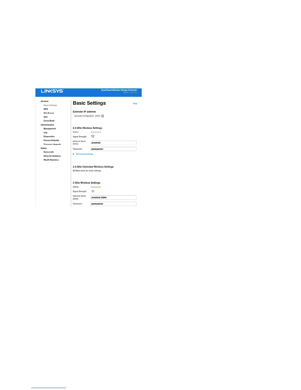 Using Range Extender Settings
