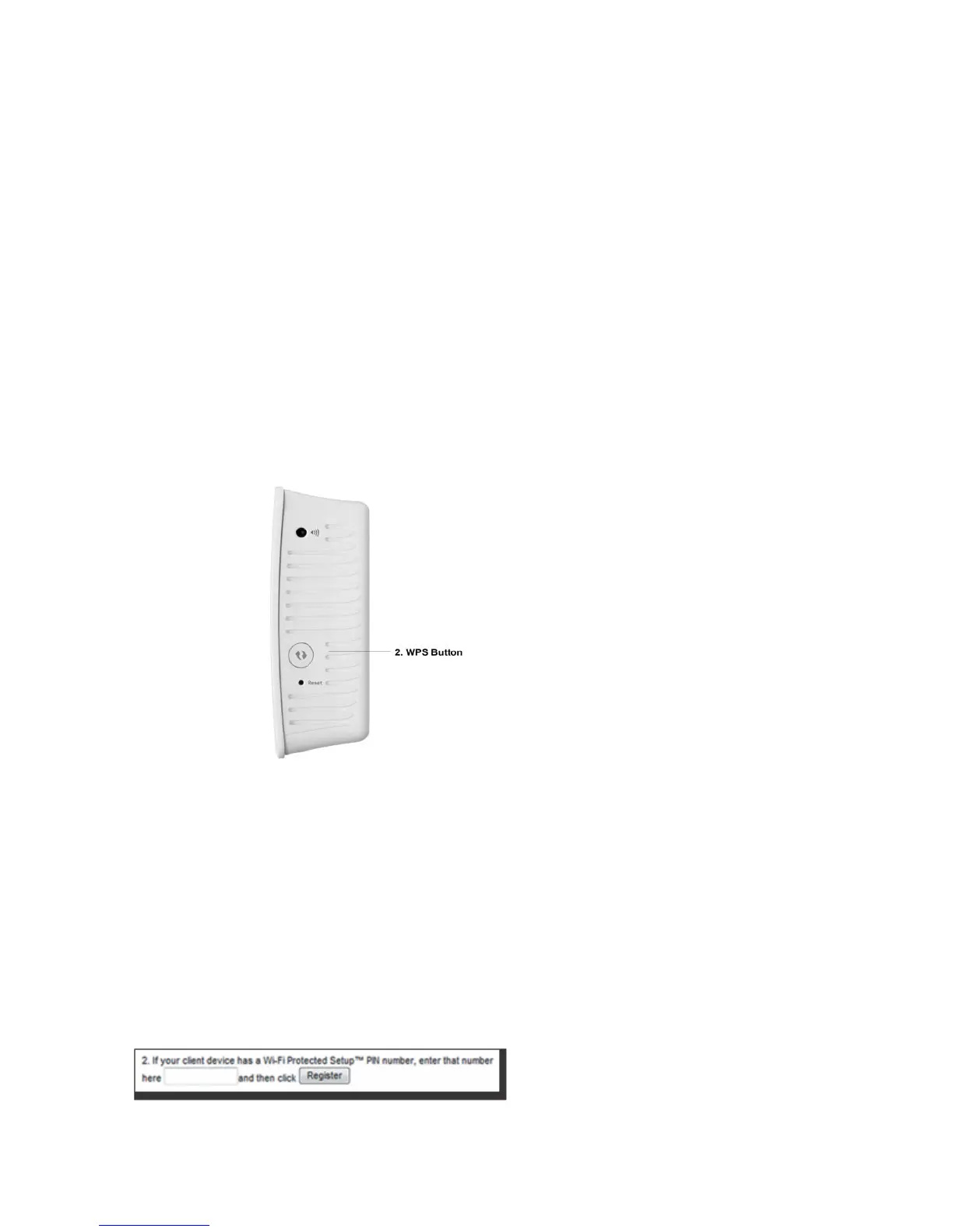 b) Click the Wi-Fi Protected Setup button on the extender’s Wi-Fi Protected Setup