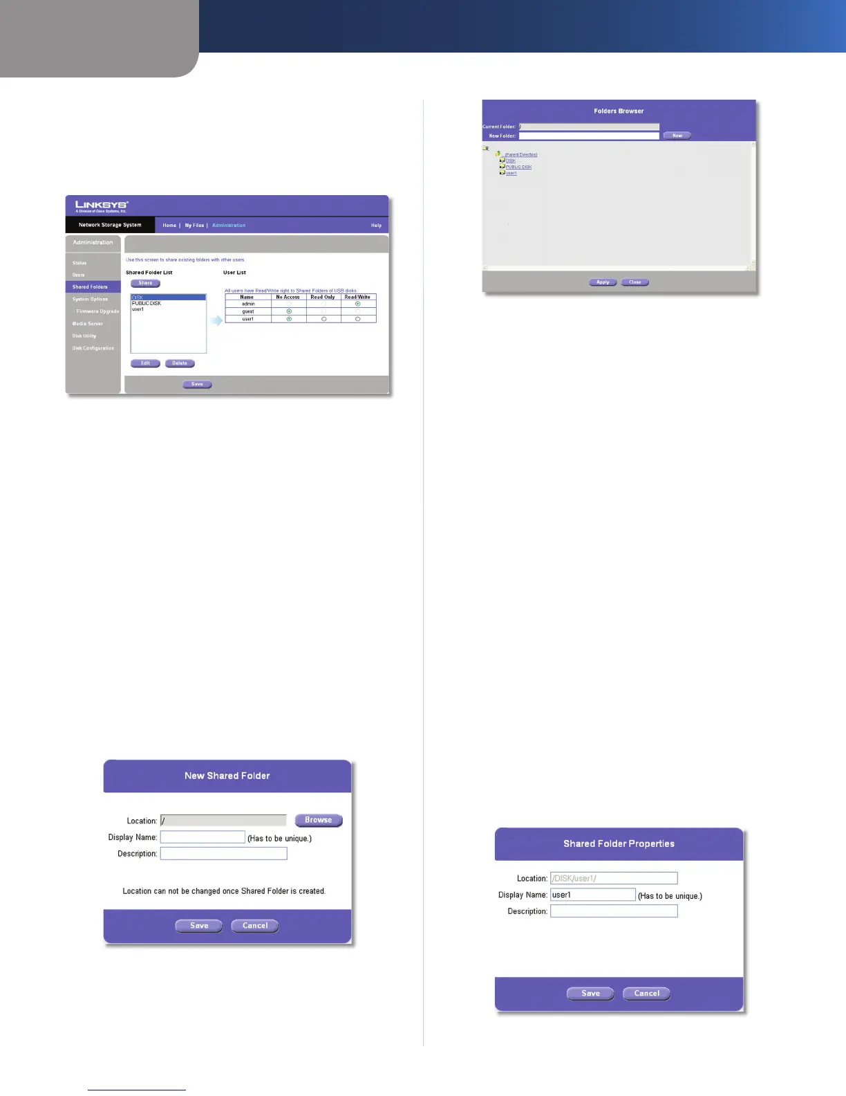 The Shared Folders screen allows you to create and manage
