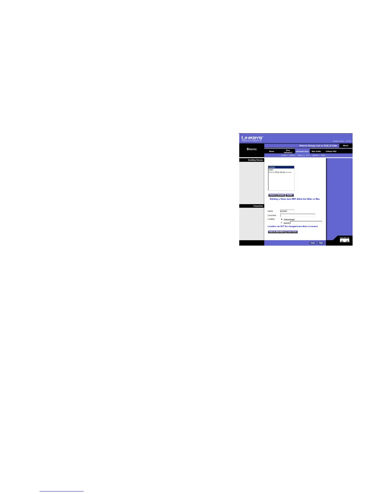 Location. This specifies the location of the share. Choose the Default folder or Specify to specify a different