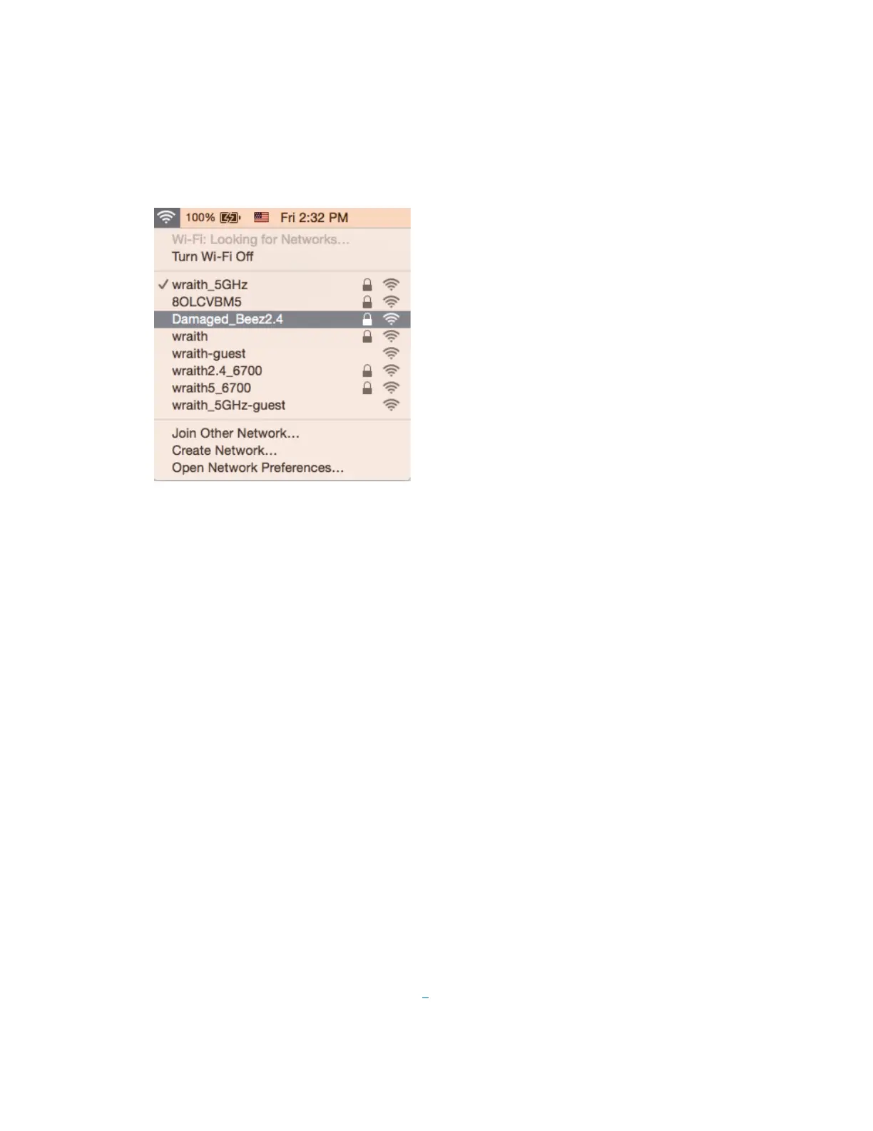 2. 在下文所示的範例中,該電腦已連線到另一個名為「wraith_5GHz」的無線網路。本示例顯示我們選擇