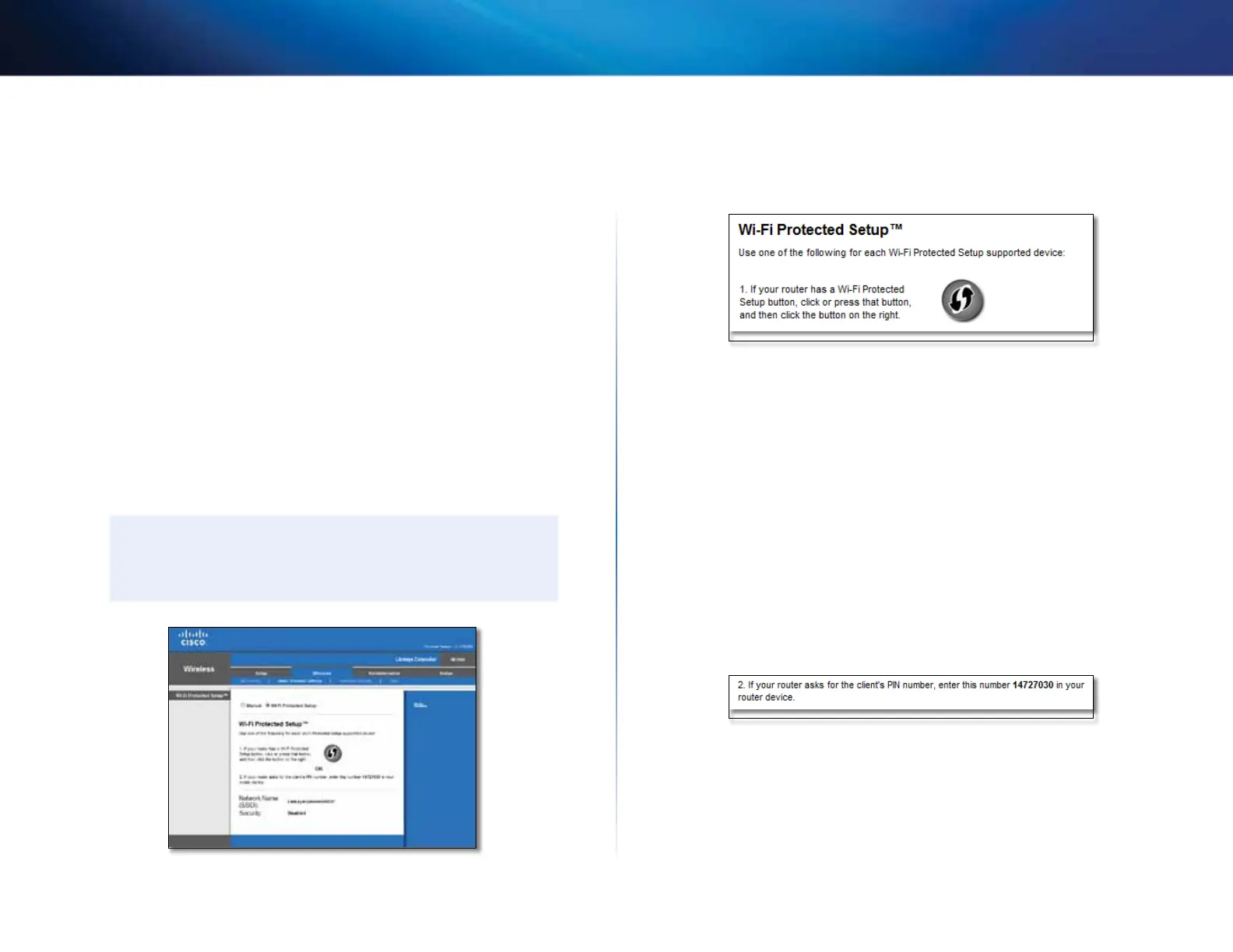 správu směrovače obrazovku pro funkci Wi-Fi Protected Setup.