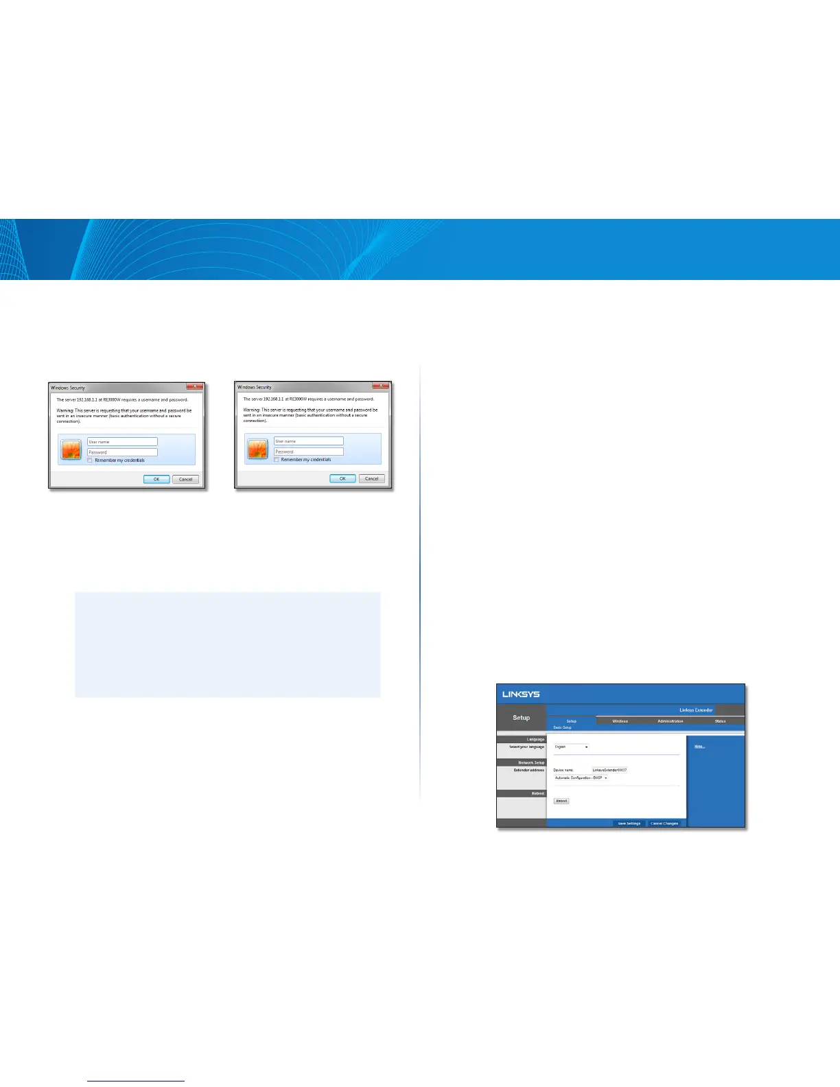di browser Anda, kotak dialog User name dan Password extender secara