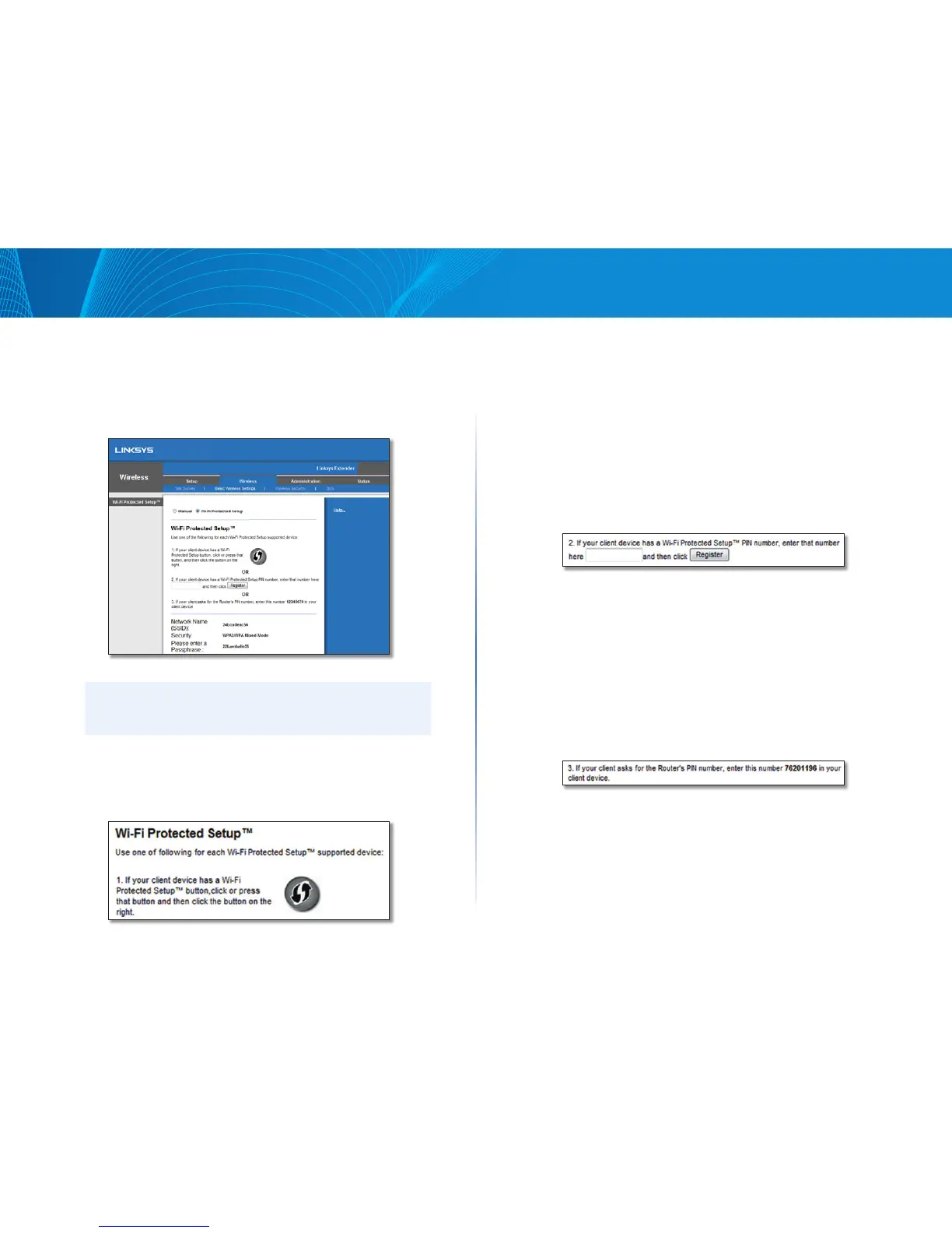 extender, ATAU tekan terus tombol Wi-Fi Protected Setup pada panel