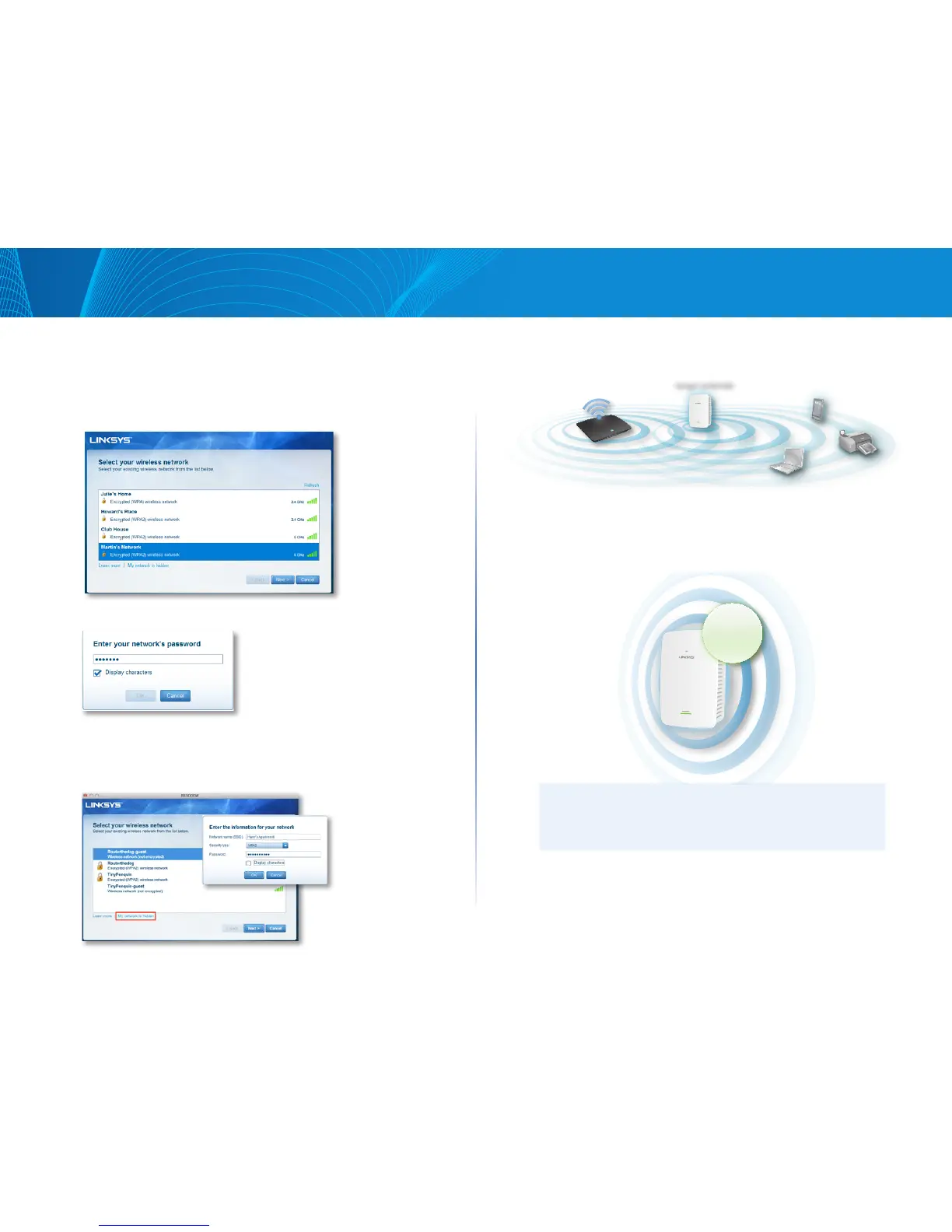 Bộ tiếp sóng sẽ tìm kiếm các mạng không dây. Danh sách các mạng