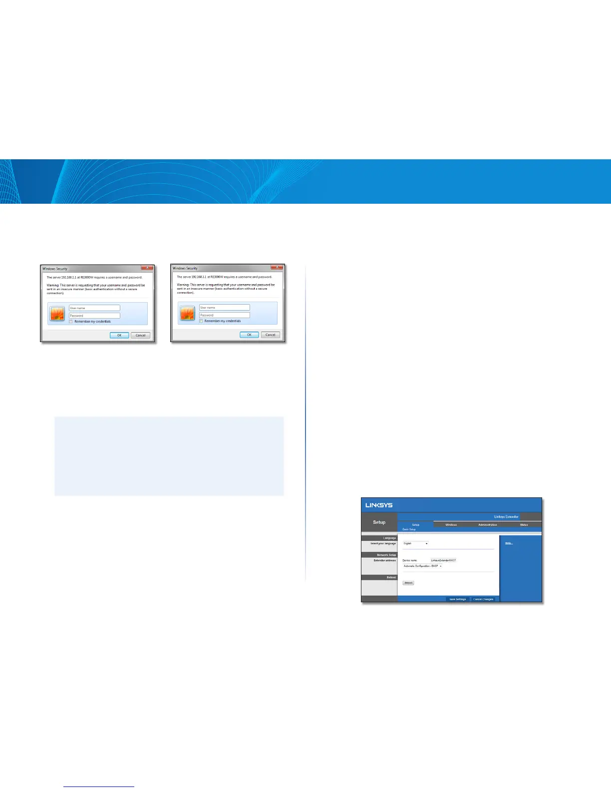 trình duyệt, hộp thoại User name và Password của bộ tiếp sóng sẽ tự