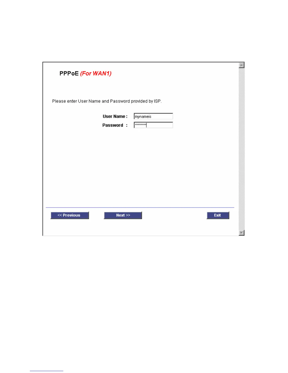PPPoE User Name and Password assigned by your Service Provider. Click “Next>>to proceed.
