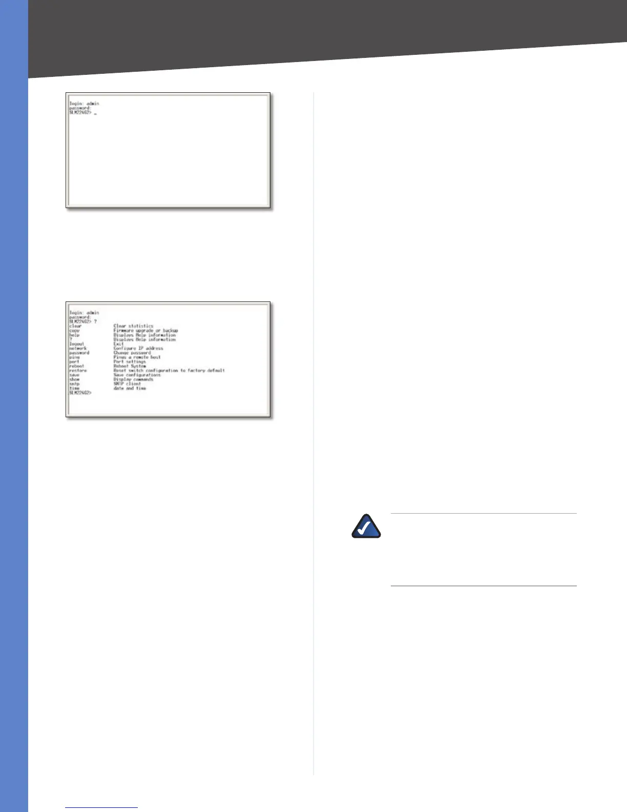 Logout Exits the Telnet session.