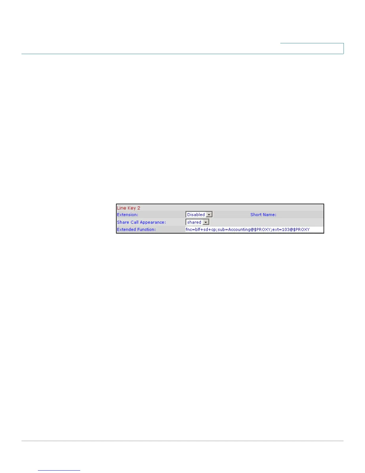 In this example, the line key is programmed as a shared line with extension